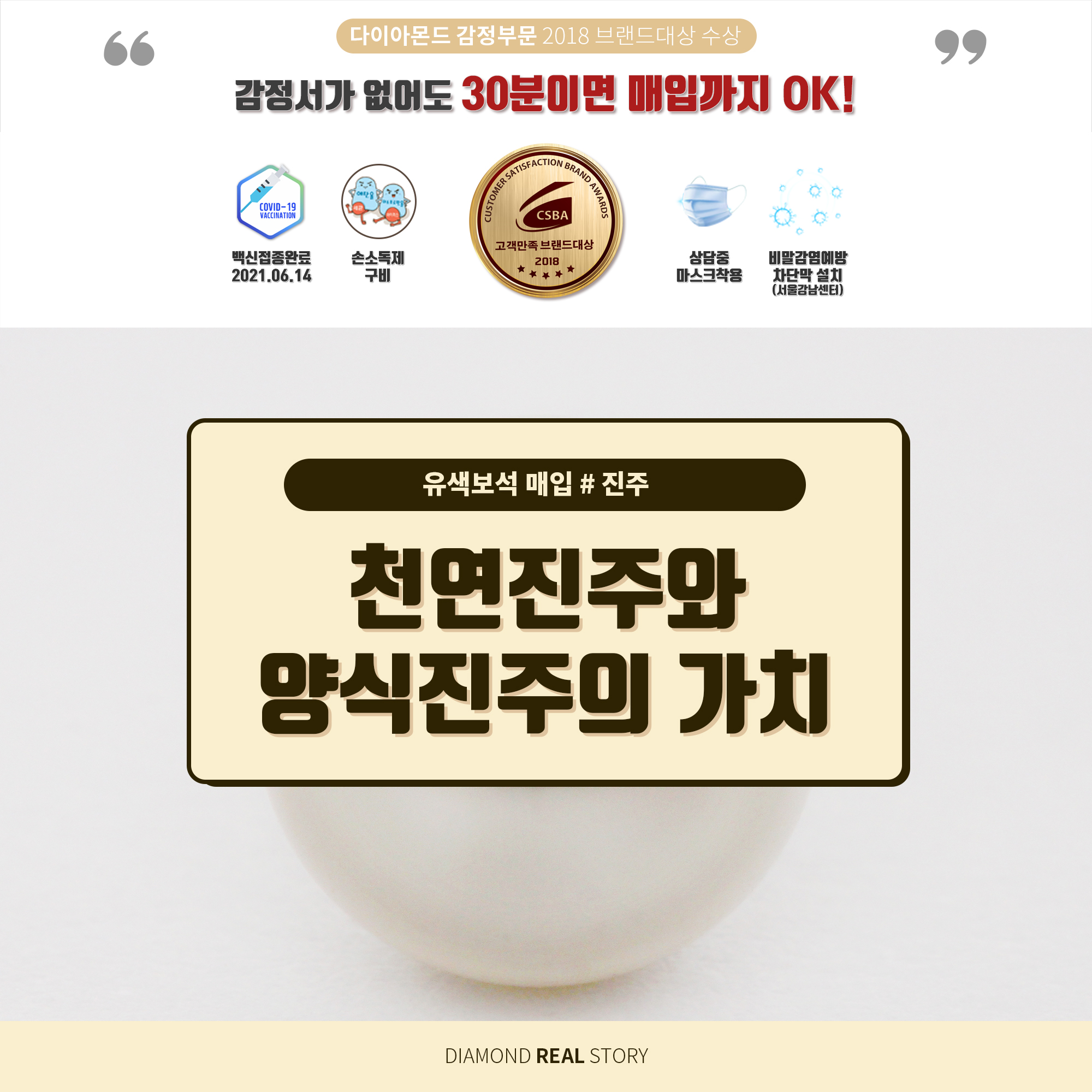 안녕하세요. 다이아몬드 지식사전 입니다. 오늘은 진주 매입에 대해서 이야기를 해볼께요. 다이아몬드와 함께 5대 보석에 속하는 루비, 에메랄드, 사파이어, 진주도 매입거래가 가능합니다. 하지만, 충족되어야 하는 기본 조건이 있습니다. 그 중 진주에 대해서 설명을 해보려고 합니다. 간혹, 천연 진주 매입에 대해서 문의를 하는 분들이 있는데요. 시장에서 판매되는 진주와 천연진주는 무엇이 다르며, 매입시 가치는 어떤지 아래에서 이야기 해볼께요~