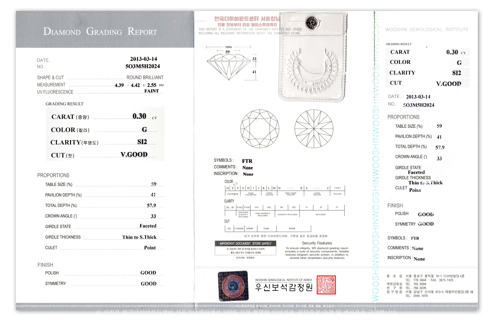 우신감정서 0.299캐럿 G SI2 cut Very good
