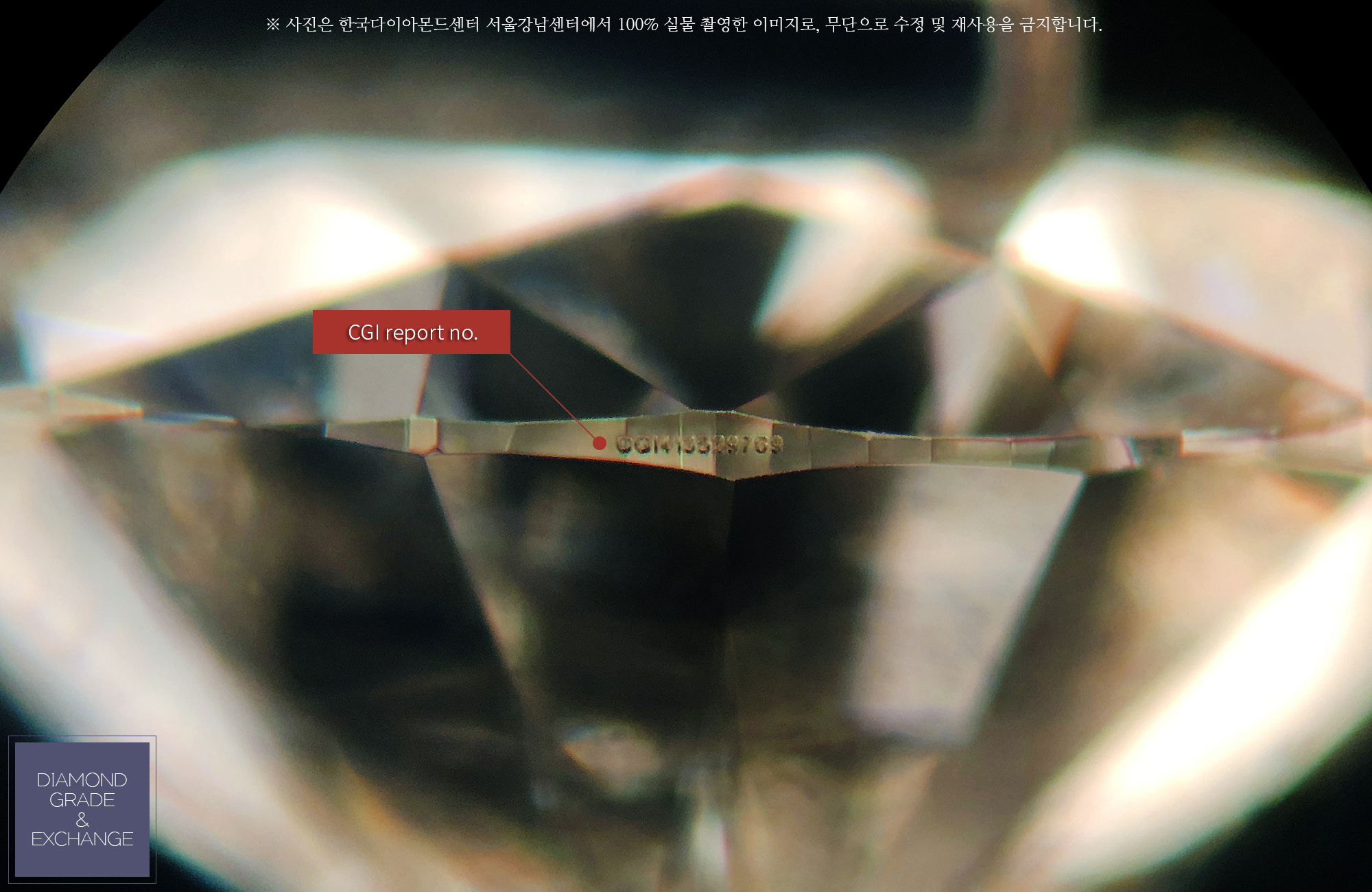 대표 감정사 유실장 "*** 고객님, 다이아몬드는 감정 완료되었습니다. 아래 측면에서 촬영한 사진으로 보면, 거들 부분에 CGI로 시작하는 넘버가 표기되어 있습니다. 부산중앙(CGI)감정서 입니다.
