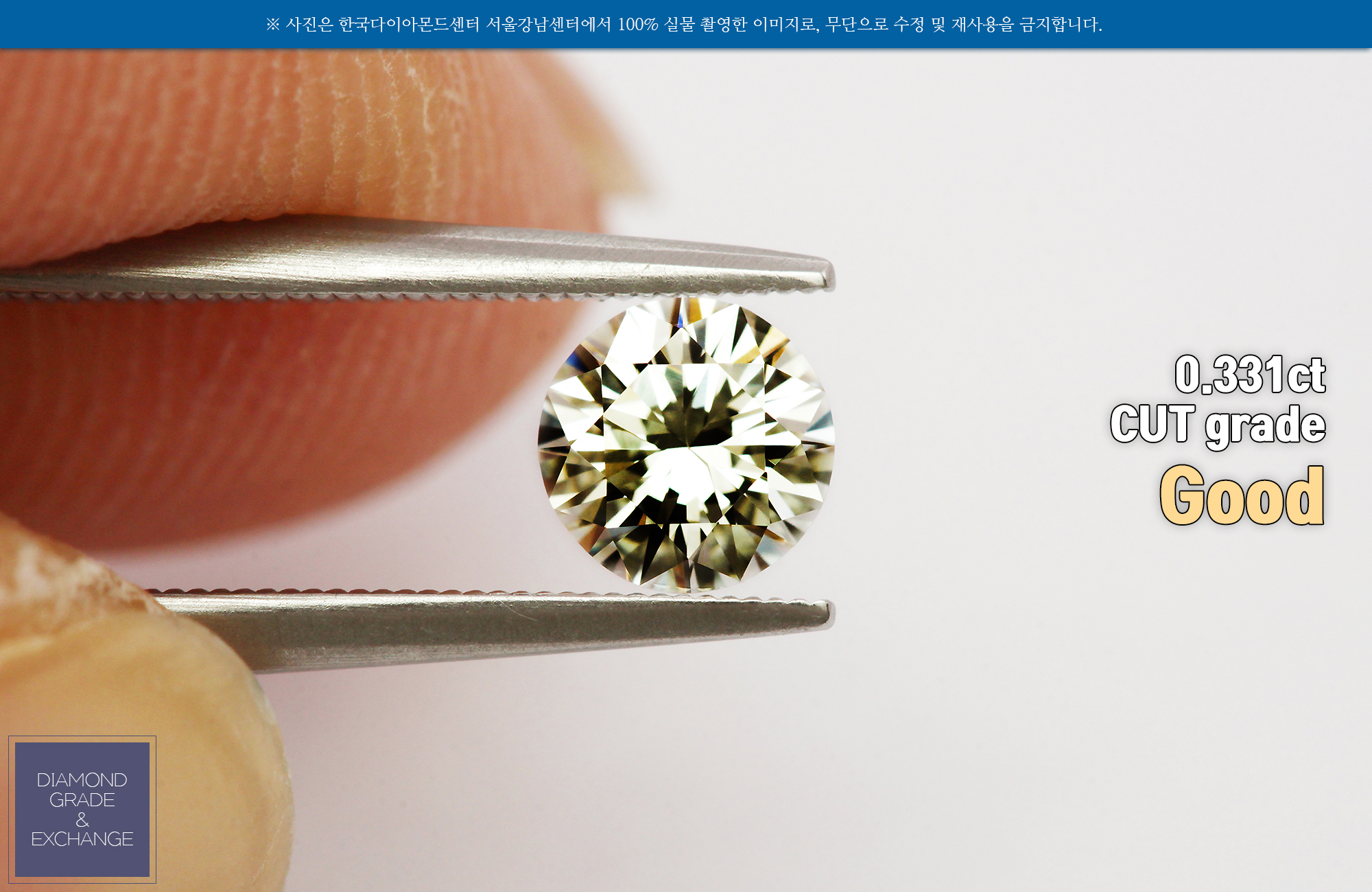 캐럿 중량(carat weight) - 실제 저울에서 확인되는 중량은 0.331캐럿 입니다. 소수점 세번째자리 생략되어 0.33캐럿으로 거래되는 다이아몬드 입니다.