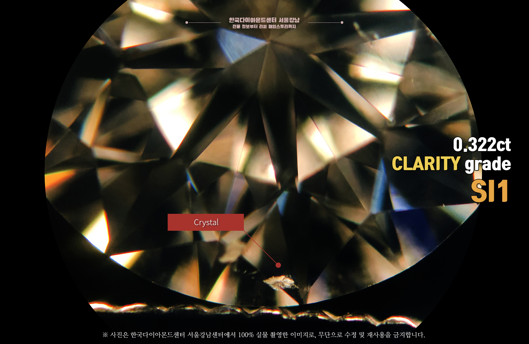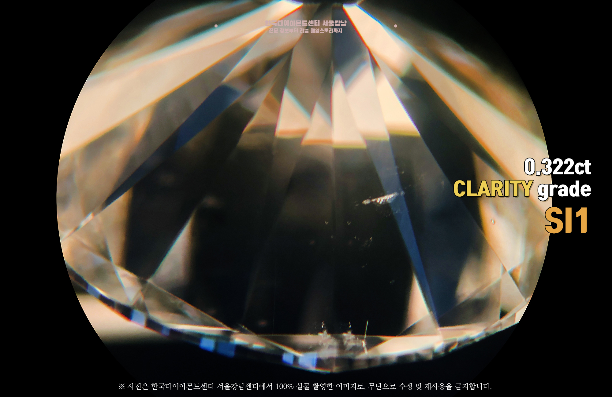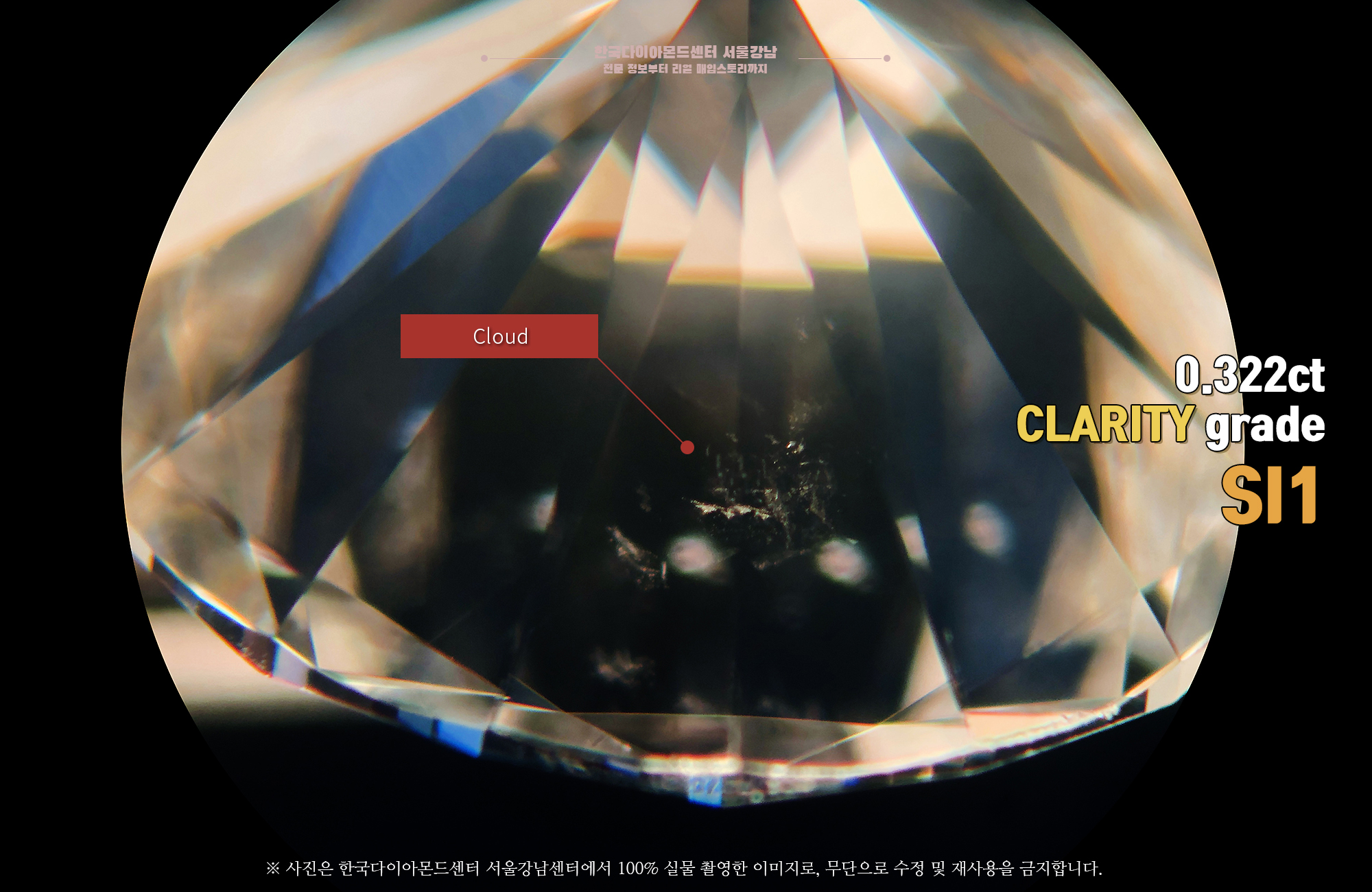 0.32캐럿은 작은 크기로 확인되는 클라우드 내포물과 결정내포물이 여러곳에서 확인됩니다.