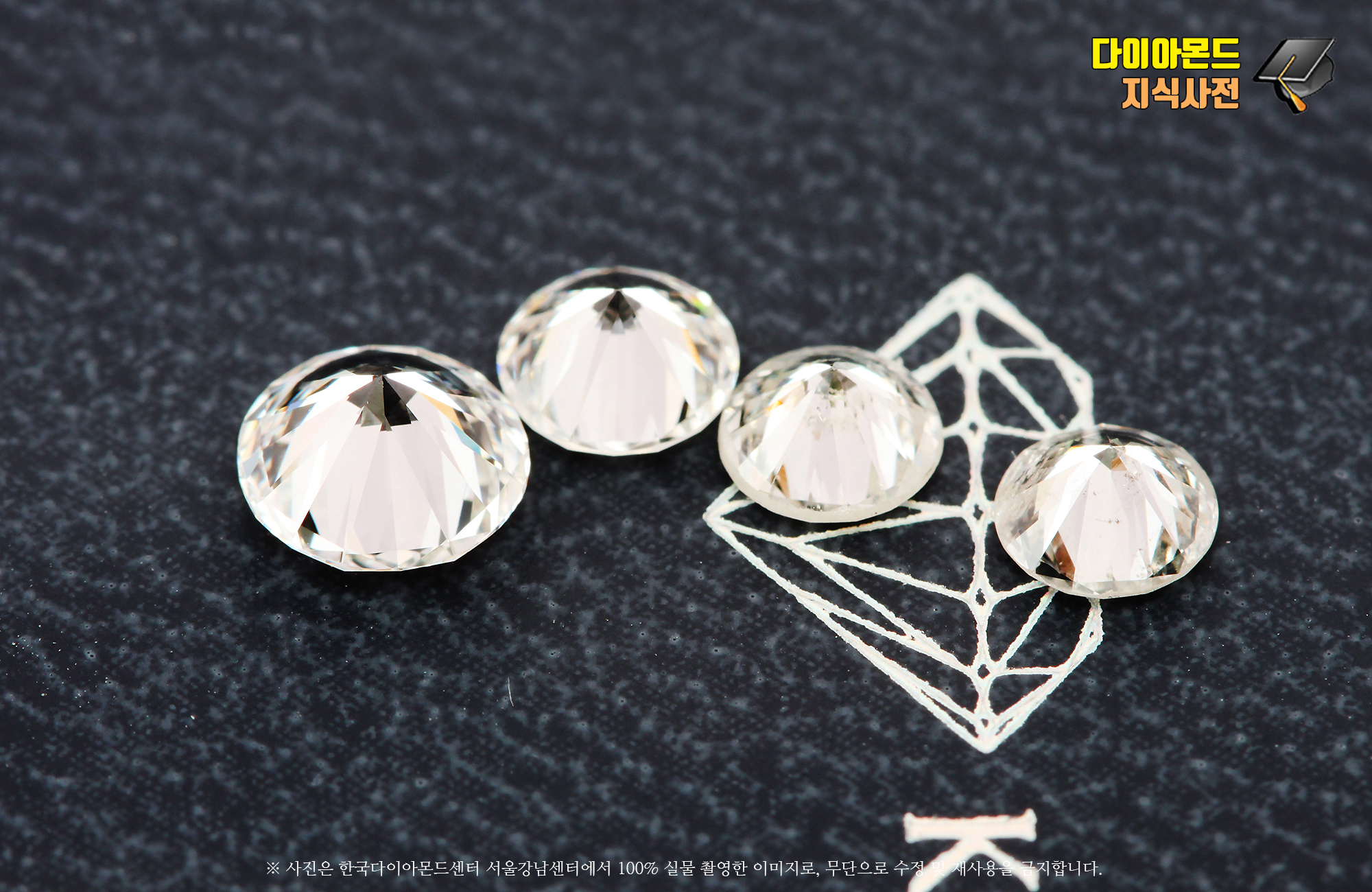 컷(cut) - 4개 모두 동일한 Good 등급으로 기본이 되는 등급 입니다. 전체적으로 각 부분의 컷팅 비율, 패싯면의 모양, 크기, 대칭성 모두 적당한 상태로 확인되는 등급이죠. 2010년 전후까지는 판매되던 등급이지만, 이후로는 상위 등급이 판매되면서 가격 하락이 지속된 등급 입니다.