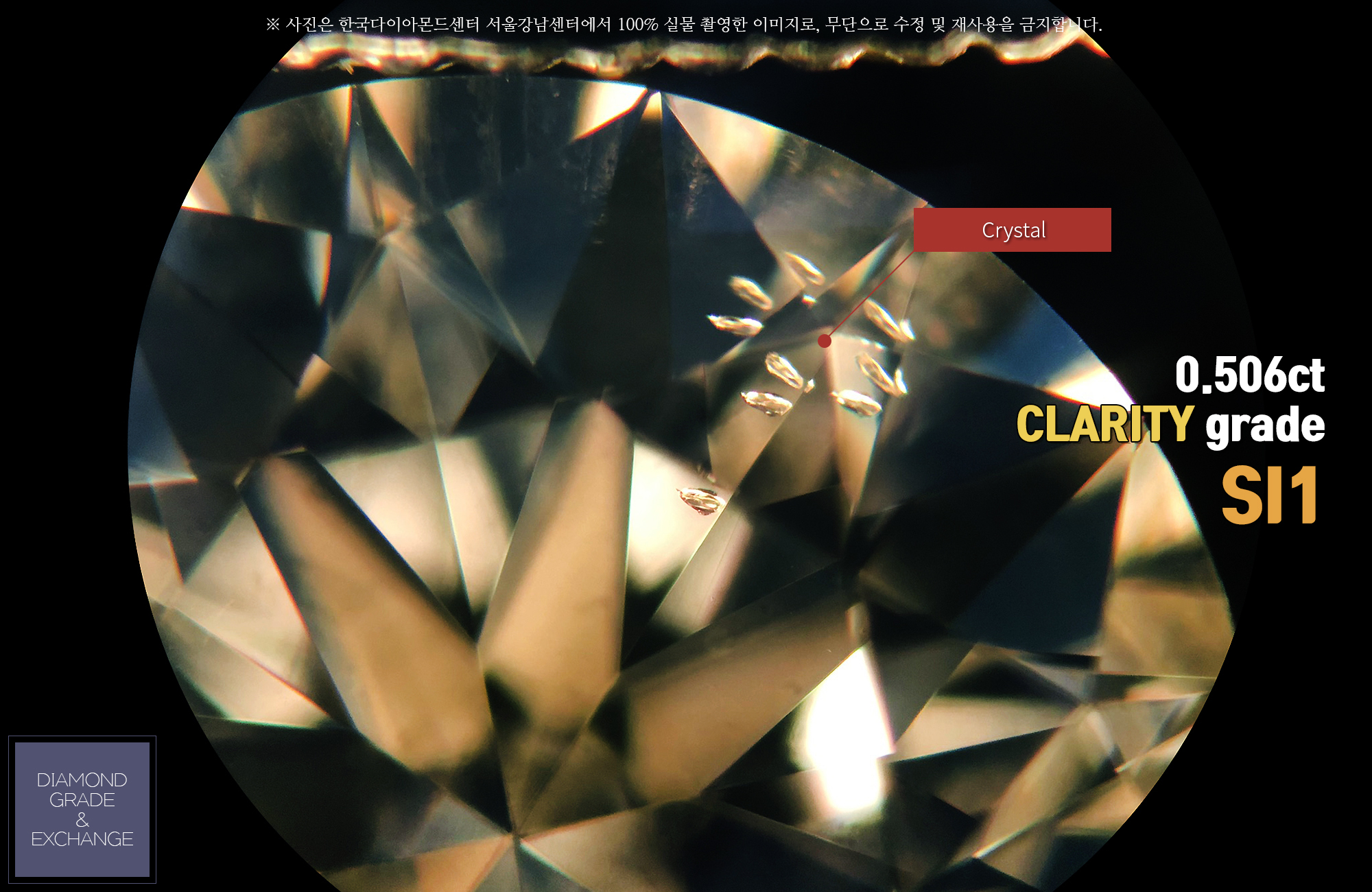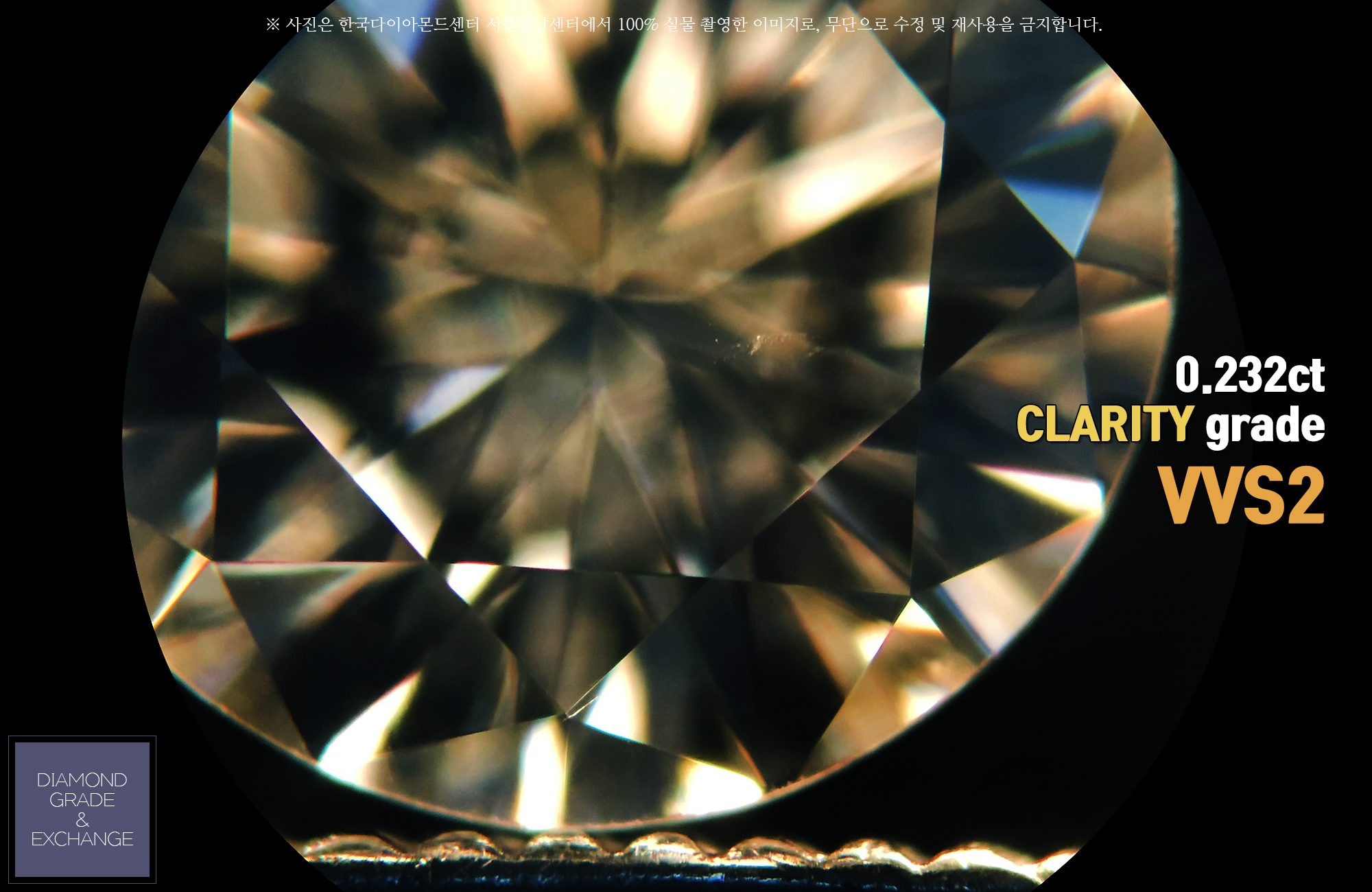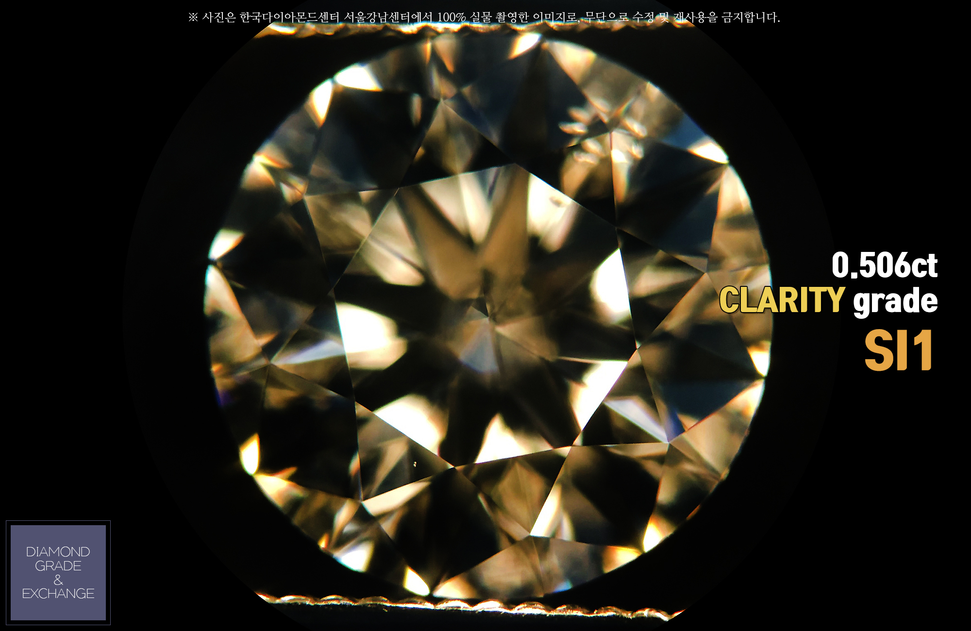 투명도(clarity) - 우신 0.50캐럿은 SI1 등급으로 특징적인 내포물을 포함하고 있습니다. 정면과 뒷면에서 결정 내포물 등을 확인할 수 있습니다. 현대 0.23캐럿은 VVS2 등급으로 매우 미세한 내포물이 포함되어 있어 현미경으로도 내포물 확인이 쉽지 않은 깨끗한 상태입니다.