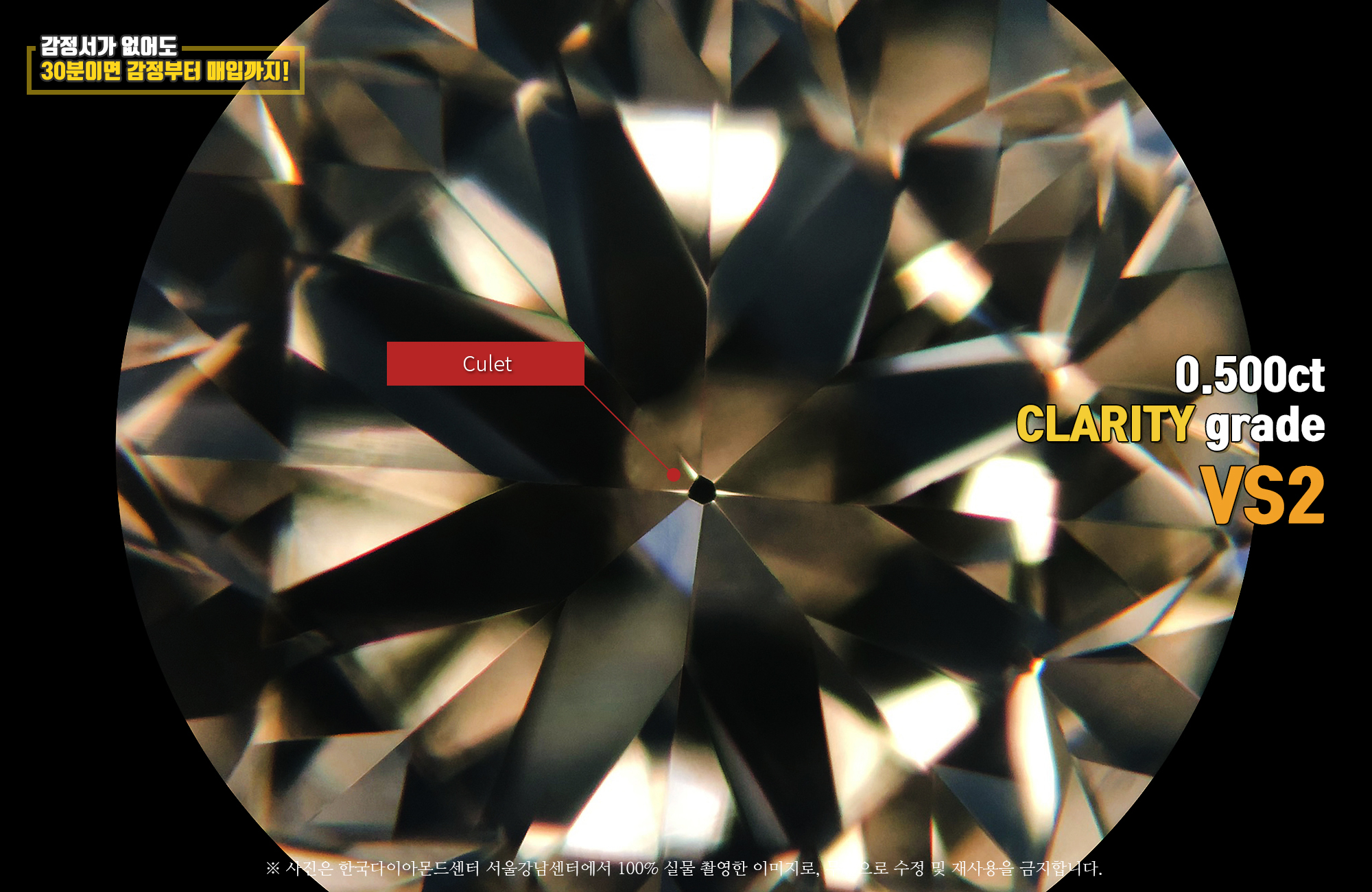 대표 감정사 유실장 "네, 컬러와 투명도 등급이 높음에도 불구하고 컷 등급이 낮고 큐렛이 medium으로 큰 편이라 여러 부분에서 매입 가격에 마이너스 영향이 발생합니다.